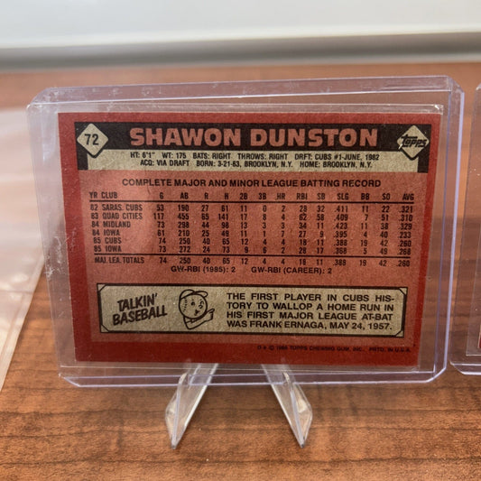 1986 Topps #72 Shawon Dunston Baseball Card Chicago Cubs Ex +Bonus Car