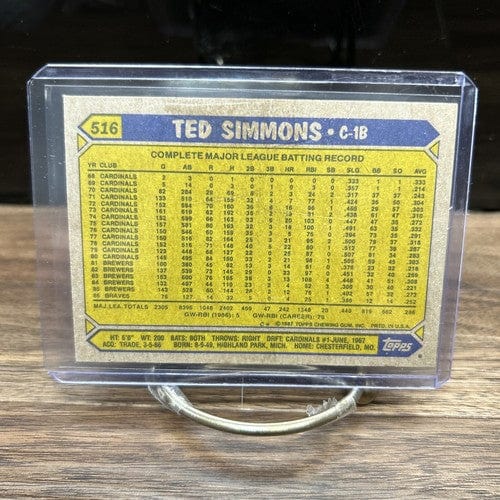 1987 MLB Topps Ted Simmons #516 Base Card - Pulled From Sealed Set