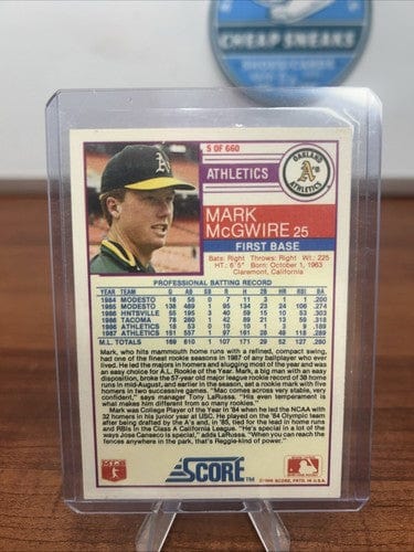 1988 Score #5 MARK MCGWIRE Oakland Athletics MLB Baseball HOF