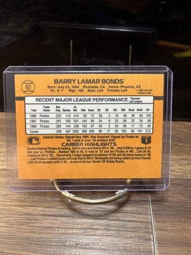 1989 Donruss #92 Barry Bonds Pittsburgh Pirates Card