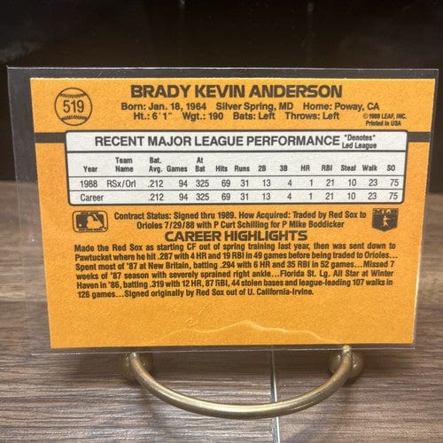 1989 Donruss Brady Anderson RC Rookie #519 Baltimore Orioles