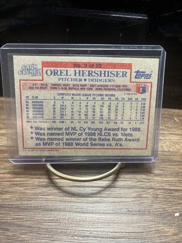 1989 Topps Cap'n Crunch BB #3 Orel Hershiser - Los Angeles Dodgers -
