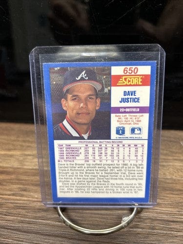 1990 Score Dave Justice Rookie card #650 Atlanta Braves Baseball