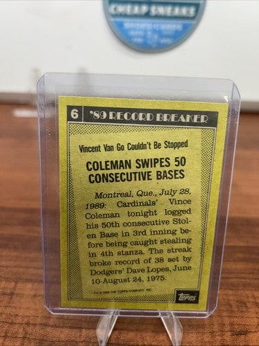 1990 Topps #6 Vince Coleman St. Louis Cardinals 1989 Record Breaker