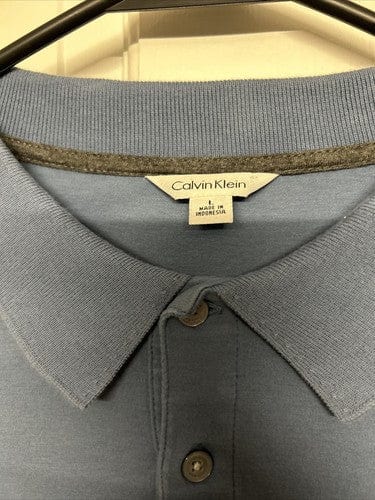 Calvin Klein Polo Shirt Men's Large Blue Short Sleeve 100% Cotton Clas