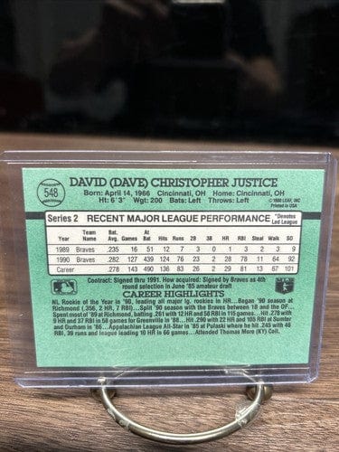 1991 Donruss Baseball Dave Justice #548 Set Break NM-MT