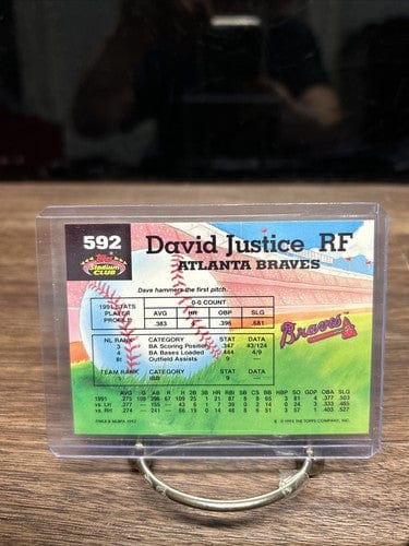 1992 Stadium Club Baseball # 592 Members Choice David Justice