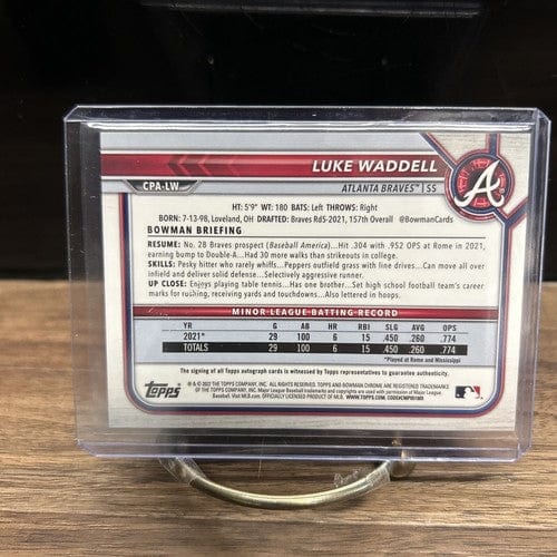 2022 Bowman Chrome Luke Waddell 1st Bowman Auto Atlanta Braves Prospec