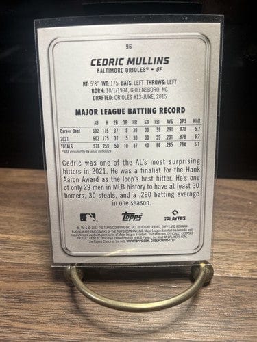 Cedric Mullins 2022 Bowman Platinum #96 Baltimore Orioles Baseball Car