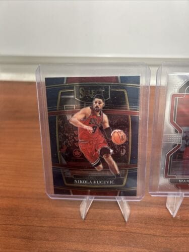 NBA Category Chicago Bulls NBA Basketball Trading Cards for sale this page/ collection has all your top NBA Collectibles trading cards from you top Brands. Card Brands Such as Panini Select, Panini Prizm, Panini Absolute, Panini NBA Hoops, Topps Chrome Cosmic, Topps, Fleer, Fleer Ultra, Upper Deck, Donruss, Donruss Optic and many more. All your top Players from modern cards back to the wax era and also some vintage Hall of Fame Players and tons of All Stars. We list all your top Autographs and relics refractors, Prizms, Colored serial numbered Cards Parallels and Short Prints. Rare and Deals on common base card Lots and other combinations of Cards. This Collection and Page consist of players from the Chicago Bulls.Â