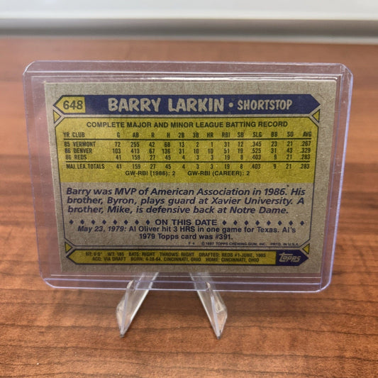 Barry Larkin (RC) 1987 Topps Rookie Baseball Card #648 Cincinnati Reds