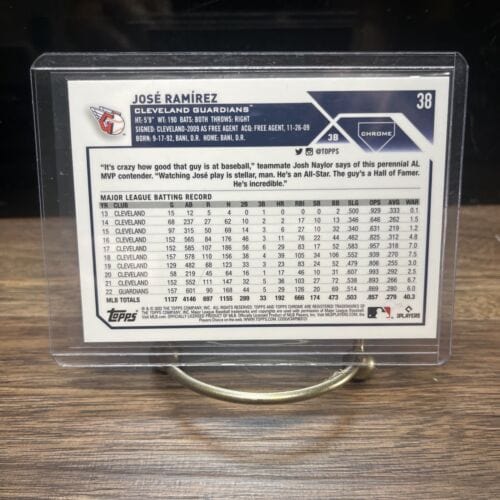 MLB Category Cleveland Guardians MLB Sports Trading Cards will be listed in this collection all the top Players present day and all of the HOF Players from different eras. We stock Topps ,Topps Heritage ,Topps Archives, Topps Gallery, Topps Tribute, Topps Chrome , Topps Chrome Cosmic, Bowmans Best , Bowman Platinum ,Bowman, Bowman Draft, Bowman Draft Chrome, Bowman Chrome Prospects, Panini Select, Panini Prizm, Donruss, Donruss Optic, Upper Deck, Fleer, Fleer Ultra, Score and Many more. You will also find Autographed Cards, Relics, Serial Numbered Cards such as 1/1 ,5,/10,/25,/50,/99,/150,/199,/250,/299,/499. And if you are looking for type of parallel color parallel we have the whole rainbow of selection.