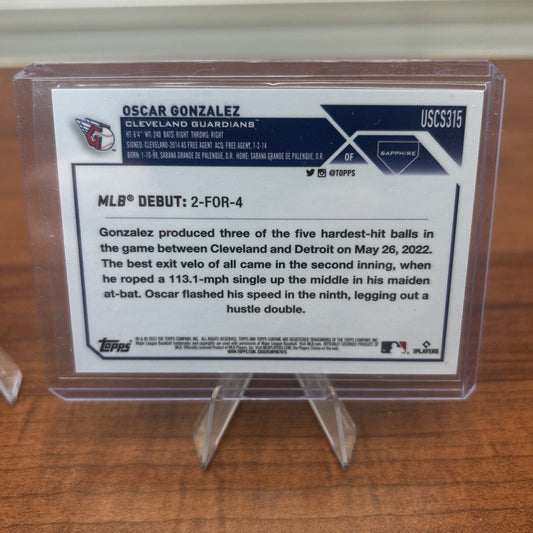 Oscar Gonzalez 2023 Topps Gold Sapphire Refractor Rookie Debut RC #USC