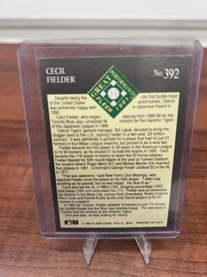 Cecil Fielder 1991 Ultra #392 Detroit Tigers