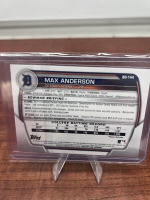 Max Anderson 2023 Bowman Draft #BD-144 Detroit Tigers