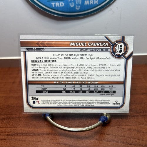 2022 Bowman Baseball # 27 Miguel Cabrera Detroit Tigers Card# 50 Futur