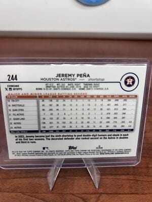 Houston Astros MLB Sports Trading Cards will be listed in this collection all the top Players present day and all of the HOF Players from different eras. We stock Topps ,Topps Heritage ,Topps Archives, Topps Gallery, Topps Tribute, Topps Chrome , Topps Chrome Cosmic, Bowmans Best , Bowman Platinum ,Bowman, Bowman Draft, Bowman Draft Chrome, Bowman Chrome Prospects, Panini Select, Panini Prizm, Donruss, Donruss Optic, Upper Deck, Fleer, Fleer Ultra, Score and Many more. You will also find Autographed Cards, Relics, Serial Numbered Cards such as 1/1 ,5,/10,/25,/50,/99,/150,/199,/250,/299,/499. And if you are looking for type of parallel color parallel we have the whole rainbow of selection.
