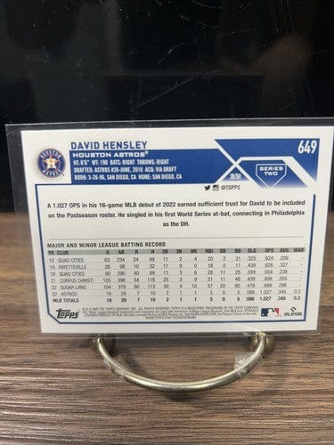 2023 Topps Series 2 David Hensley Rookie RC Houston Astros #649