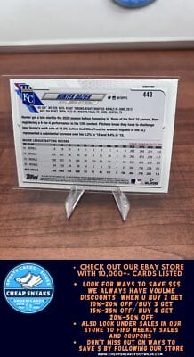 MLB Category Kansa City Royals MLB Sports Trading Cards will be listed in this collection all the top Players present day and all of the HOF Players from different eras. We stock Topps ,Topps Heritage ,Topps Archives, Topps Gallery, Topps Tribute, Topps Chrome , Topps Chrome Cosmic, Bowmans Best , Bowman Platinum ,Bowman, Bowman Draft, Bowman Draft Chrome, Bowman Chrome Prospects, Panini Select, Panini Prizm, Donruss, Donruss Optic, Upper Deck, Fleer, Fleer Ultra, Score and Many more. You will also find Autographed Cards, Relics, Serial Numbered Cards such as 1/1 ,5,/10,/25,/50,/99,/150,/199,/250,/299,/499. And if you are looking for type of parallel color parallel we have the whole rainbow of selection.