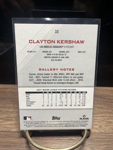 2022 Topps Gallery Baseball Clayton Kershaw Base #33 Los Angeles Dodge