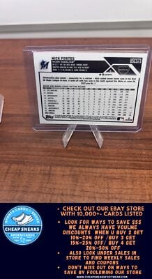 MLB category Miami Marlins MLB Sports Trading Cards will be listed in this collection all the top Players present day and all of the HOF Players from different eras. We stock Topps ,Topps Heritage ,Topps Archives, Topps Gallery, Topps Tribute, Topps Chrome , Topps Chrome Cosmic, Bowmans Best , Bowman Platinum ,Bowman, Bowman Draft, Bowman Draft Chrome, Bowman Chrome Prospects, Panini Select, Panini Prizm, Donruss, Donruss Optic, Upper Deck, Fleer, Fleer Ultra, Score and Many more. You will also find Autographed Cards, Relics, Serial Numbered Cards such as 1/1 ,5,/10,/25,/50,/99,/150,/199,/250,/299,/499. And if you are looking for type of parallel color parallel we have the whole rainbow of selection.