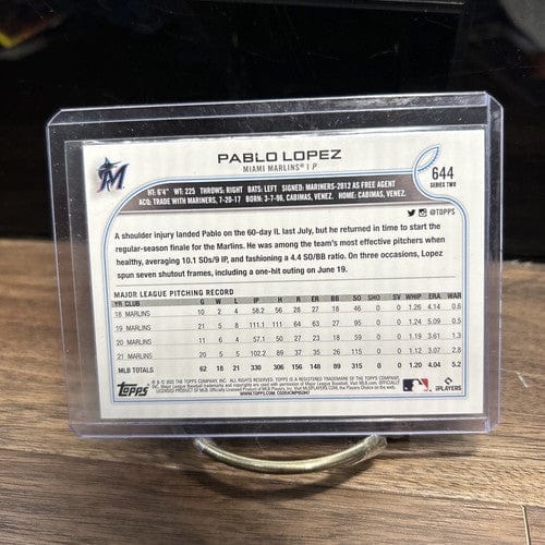 PABLO LOPEZ MARLINS 2022 TOPPS BLUE PARALLEL BASE SP CARD #644