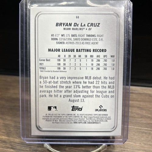 2022 Bowman Platinum Bryan De La Cruz #68 Rookie RC Miami Marlins