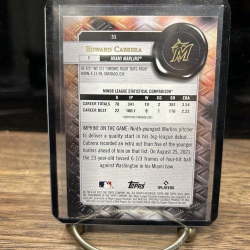 2022 Topps Gold Label #31 Edward Cabrera Miami Marlins Rookie Class 1