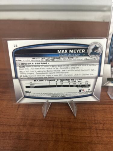 Max Meyer (RC) 2023 Bowman Baseball Card #36 Miami Marlins + Bonus Car