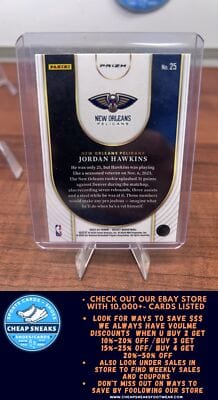 NBA Category New Orleans Pelicans NBA Basketball Trading Cards for sale this page/ collection has all your top NBA Collectibles trading cards from you top Brands. Card Brands Such as Panini Select, Panini Prizm, Panini Absolute, Panini NBA Hoops, Topps Chrome Cosmic, Topps, Fleer, Fleer Ultra, Upper Deck, Donruss, Donruss Optic and many more. All your top Players from modern cards back to the wax era and also some vintage Hall of Fame Players and tons of All Stars. We list all your top Autographs and relics refractors, Prizms, Colored serial numbered Cards Parallels and Short Prints. Rare and Deals on common base card Lots and other combinations of Cards. This Collection and Page consist of players from the New Orleans PelicansÂ