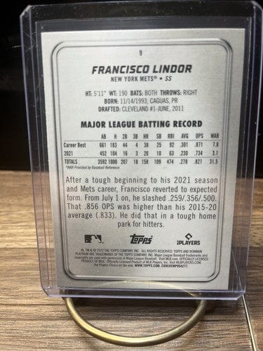 FRANCISCO LINDOR 2022 TOPPS STADIUM CLUB CHROME Card #41, METS
