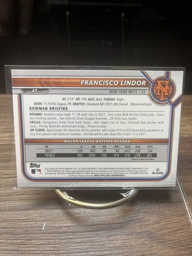2022 Topps Bowman Baseball Francisco Lindor Base #47 New York Mets