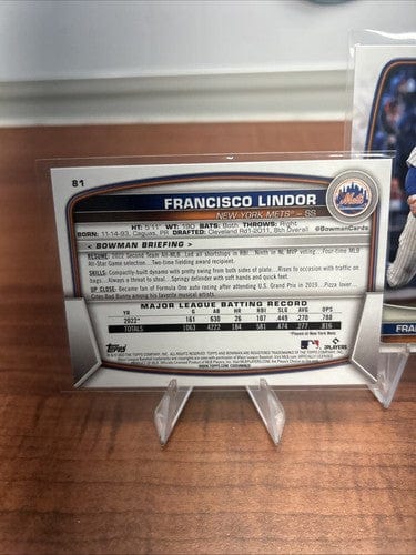 Francisco Lindor 2023 Bowman Baseball Card #81 New York Mets + Bonus