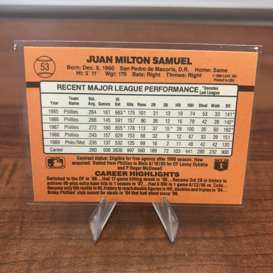 JUAN SAMUEL 1990 DONRUSS Baseball Card #53 New York Mets