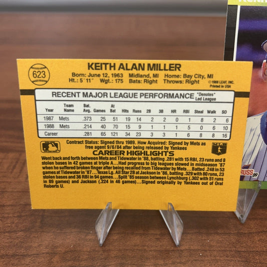 Keith Miller 1989 Donruss Baseball Card #623 New York Mets + Bonus Ca