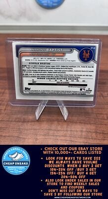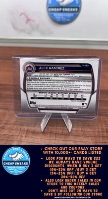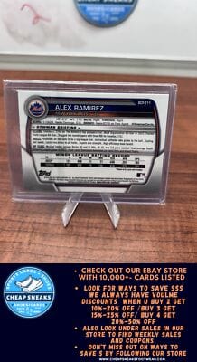 MLB Category New York Mets MLB Sports Trading Cards will be listed in this collection all the top Players present day and all of the HOF Players from different eras. We stock Topps ,Topps Heritage ,Topps Archives, Topps Gallery, Topps Tribute, Topps Chrome , Topps Chrome Cosmic, Bowmans Best , Bowman Platinum ,Bowman, Bowman Draft, Bowman Draft Chrome, Bowman Chrome Prospects, Panini Select, Panini Prizm, Donruss, Donruss Optic, Upper Deck, Fleer, Fleer Ultra, Score and Many more. You will also find Autographed Cards, Relics, Serial Numbered Cards such as 1/1 ,5,/10,/25,/50,/99,/150,/199,/250,/299,/499. And if you are looking for type of parallel color parallel we have the whole rainbow of selection.