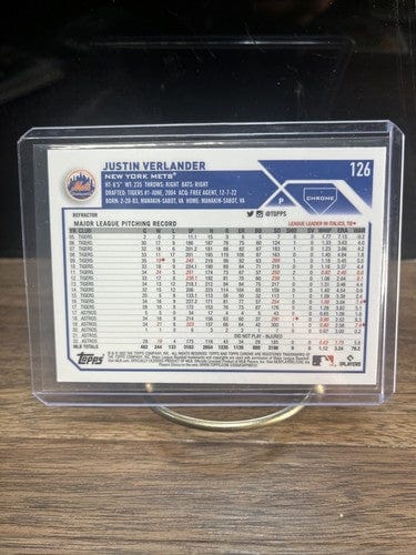 Justin Verlander 2023 Topps Chrome Baseball Card #126 New York Mets