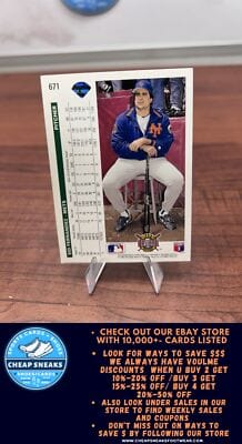MLB Category New York Mets MLB Sports Trading Cards will be listed in this collection all the top Players present day and all of the HOF Players from different eras. We stock Topps ,Topps Heritage ,Topps Archives, Topps Gallery, Topps Tribute, Topps Chrome , Topps Chrome Cosmic, Bowmans Best , Bowman Platinum ,Bowman, Bowman Draft, Bowman Draft Chrome, Bowman Chrome Prospects, Panini Select, Panini Prizm, Donruss, Donruss Optic, Upper Deck, Fleer, Fleer Ultra, Score and Many more. You will also find Autographed Cards, Relics, Serial Numbered Cards such as 1/1 ,5,/10,/25,/50,/99,/150,/199,/250,/299,/499. And if you are looking for type of parallel color parallel we have the whole rainbow of selection.