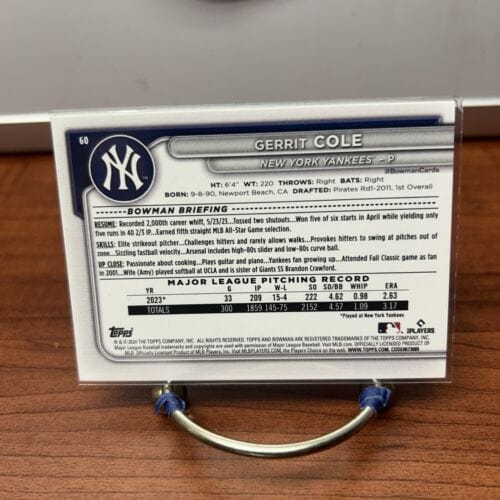 Gerrit Cole 2024 Bowman Baseball Card #60 New York Yankees