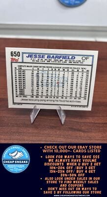 Jesse Barfield 1992 Topps #650 New York Yankees