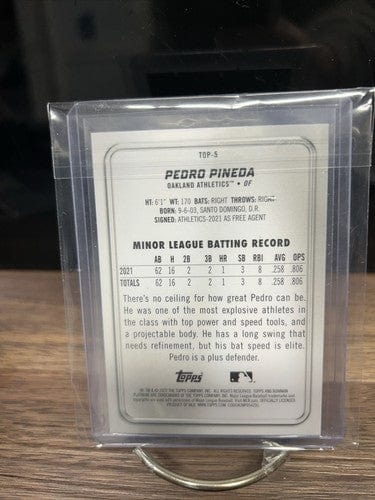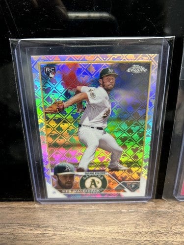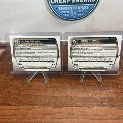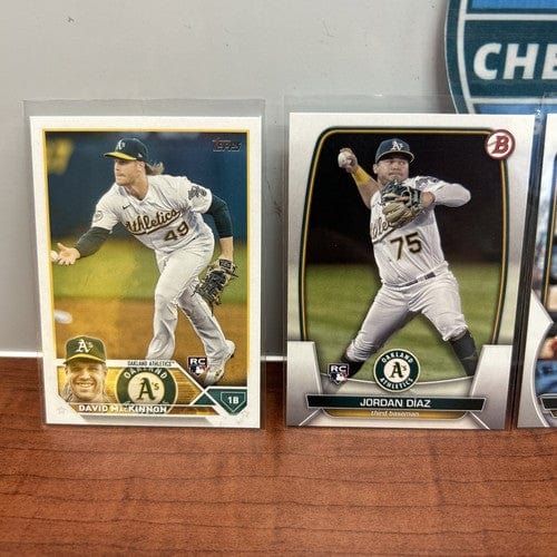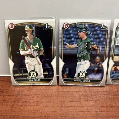 Oakland Athletics MLB Sports Trading Cards will be listed in this collection all the top Players present day  and all of the HOF Players from different eras. We stock Topps ,Topps Heritage ,Topps Archives, Topps Gallery, Topps Tribute, Topps Chrome , Topps Chrome Cosmic, Bowmans Best , Bowman Platinum ,Bowman, Bowman Draft, Bowman Draft Chrome, Bowman Chrome Prospects, Panini Select, Panini Prizm, Donruss, Donruss Optic, Upper Deck, Fleer, Fleer Ultra, Score and Many more. You will also find Autographed Cards, Relics, Serial Numbered Cards such as 1/1 ,5,/10,/25,/50,/99,/150,/199,/250,/299,/499. And if you are looking for type of parallel color parallel we have the whole rainbow of selection.  only Oakland Athletics players will be listed under this collection.