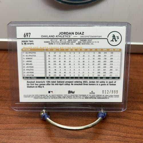 Jordan Diaz 2024 Topps Series 2 Blue Foil 012/999 Card #697 Oakland At