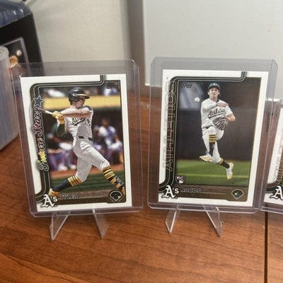 Oakland Athletics MLB Sports Trading Cards will be listed in this collection all the top Players present day and all of the HOF Players from different eras. We stock Topps ,Topps Heritage ,Topps Archives, Topps Gallery, Topps Tribute, Topps Chrome , Topps Chrome Cosmic, Bowmans Best , Bowman Platinum ,Bowman, Bowman Draft, Bowman Draft Chrome, Bowman Chrome Prospects, Panini Select, Panini Prizm, Donruss, Donruss Optic, Upper Deck, Fleer, Fleer Ultra, Score and Many more. You will also find Autographed Cards, Relics, Serial Numbered Cards such as 1/1 ,5,/10,/25,/50,/99,/150,/199,/250,/299,/499. And if you are looking for type of parallel color parallel we have the whole rainbow of selection. only Oakland Athletics players will be listed under this collection.
