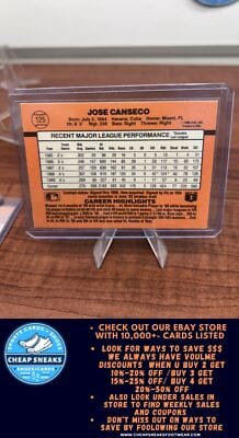 Jose Canseco 1990 Fleer #3b Oakland Athletics