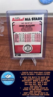 Mark McGwire 1989 Fleer Baseball All-Stars #29 Oakland Athletics