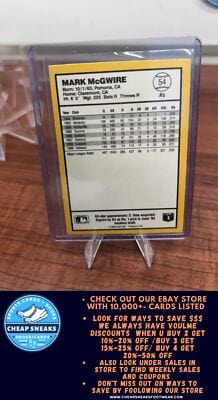 1988 Score #5 MARK MCGWIRE Oakland Athletics MLB Baseball HOF