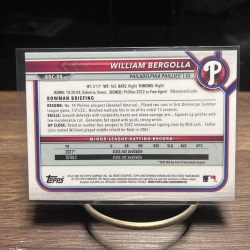 2022 Bowman Chrome Draft #BDC88 William Bergolla Phillies