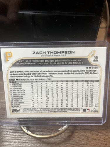 2022 Topps Chrome Base #30 Zach Thompson - Pittsburgh Pirates