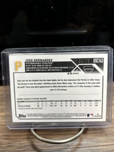 MLB Category Pittsburgh Pirates MLB Sports Trading Cards will be listed in this collection all the top Players present day and all of the HOF Players from different eras. We stock Topps ,Topps Heritage ,Topps Archives, Topps Gallery, Topps Tribute, Topps Chrome , Topps Chrome Cosmic, Bowmans Best , Bowman Platinum ,Bowman, Bowman Draft, Bowman Draft Chrome, Bowman Chrome Prospects, Panini Select, Panini Prizm, Donruss, Donruss Optic, Upper Deck, Fleer, Fleer Ultra, Score and Many more. You will also find Autographed Cards, Relics, Serial Numbered Cards such as 1/1 ,5,/10,/25,/50,/99,/150,/199,/250,/299,/499. And if you are looking for type of parallel color parallel we have the whole rainbow of selection.