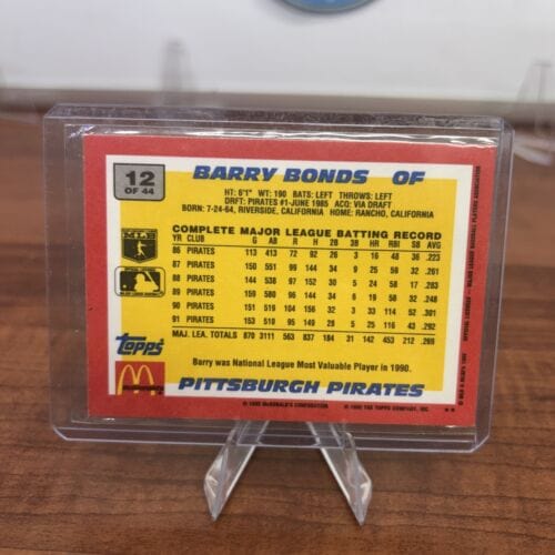 BARRY BONDS 1992 Topps McDonald's Best GOLD Insert #12 of 44. Pirates